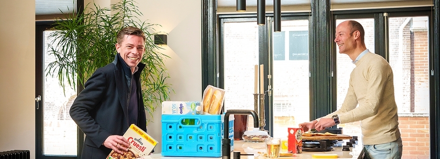 Bij zijn afstuderen kreeg Lodewijk Wisse (44, rechts) de vraag van het Leids Universiteits Fonds of hij jaarlijks een bedrag wilde doneren aan zijn alma mater. Daar hoefde hij niet lang over na te denken. Zijn echtgenoot Reinier van Mechelen (39) volgde een paar jaar later. ‘Zie het als een bedankje voor alles wat de universiteit voor ons heeft betekend.’
